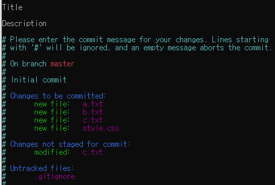 git commit 명령어를 실행하면 commit 이전에 Git 설정에 지정된 편집기가 실행된다.