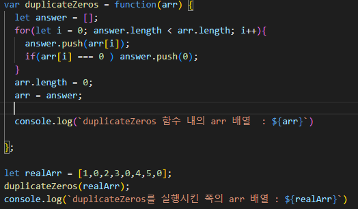 duplicateZeros가 보고 있는 arr 이라는 변수가 가리키는 배열이 바뀐 것이지
