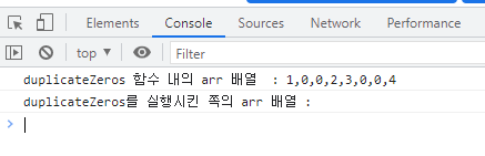 같은 코드를 vscode로 작성하여 실행시켰을 땐 console.log로 찍은 결과가 [1,0,0,2,3,0,0,4] 로 정답과 동일했다.