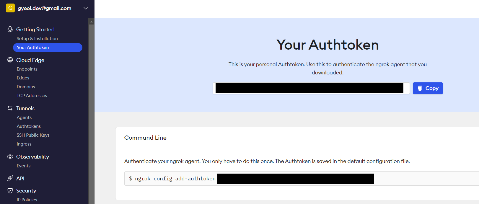 3. ngrok을 실행시켜 인증 토큰 추가하기