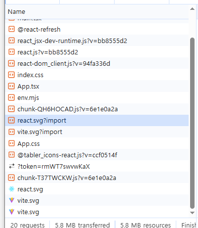 이렇게 하면 Vite가 개별 아이콘 파일들을 분석하거나 요청하는 일을 더 이상 하지 않게 된다.