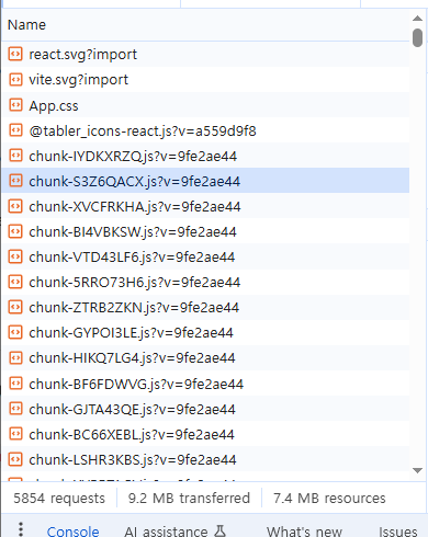 너무 느려서 네트워크 탭을 확인해봤더니, 5,000개가 넘는 아이콘 청크를 전부 요청하고 있었다.