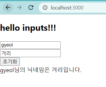 위의 방법을 활용하여 이름과 닉네임을 입력받을 수 있는 input 태그들을 구현해보자.